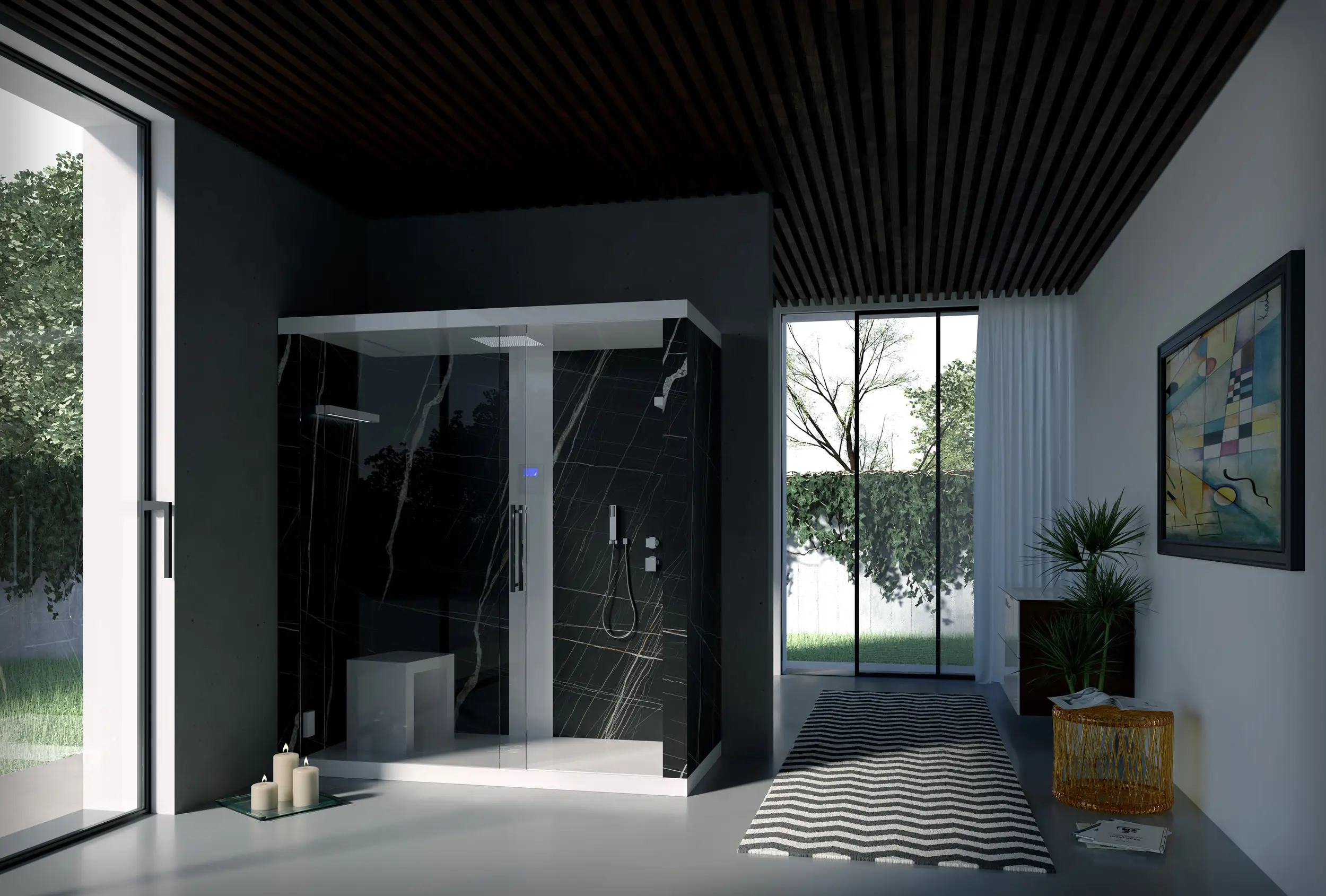 Con Piùesse, immergersi in un mondo di comfort diventa parte della routine quotidiana, grazie a funzionalità avanzate come bagno turco, idromassaggio, cromoterapia, aromaterapia e sistemi audio integrati che trasformano ogni doccia in una fuga personale dall'ordinario.
